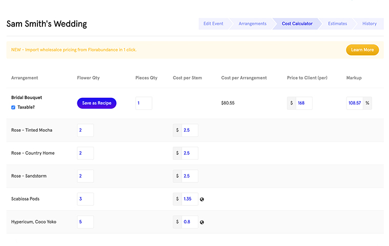 Find the perfect flowers, impress your clients, and calculate profit before an event.